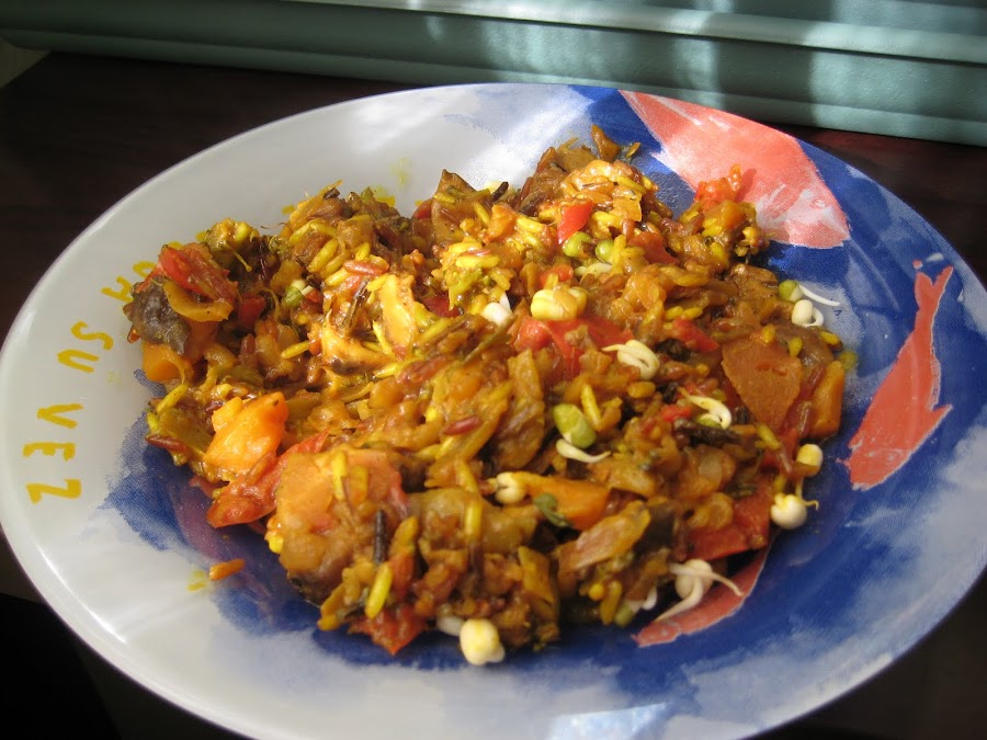 El resultado es un exquisito arroz, que contiene gran parte de los alimentos anticáncer que deberíamos consumir a diario. Con estas cantidades de agua nos saldrá un arroz más bien seco, si os gusta más caldoso añadid más agua.
