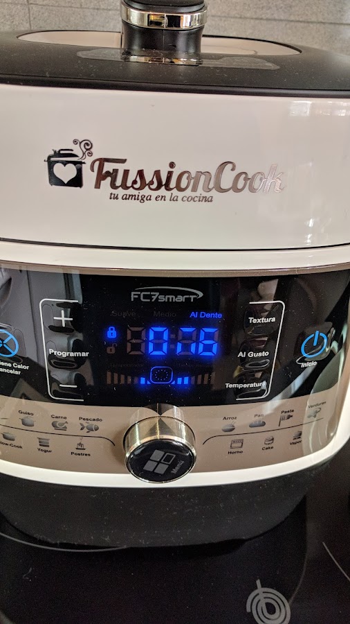 Después de añadir el arroz programa menú guiso, 7 minutos a160 grados y presión predeterminada.