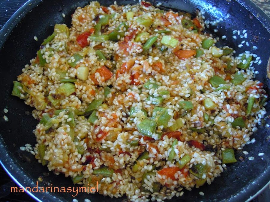 El arroz es uno de esos ingredientes que combina bien con casi todos los alimentos, se hace una gran diversidad de arroces en paella y hoy voy a poneros uno de ellos "el arroz con verduras"...