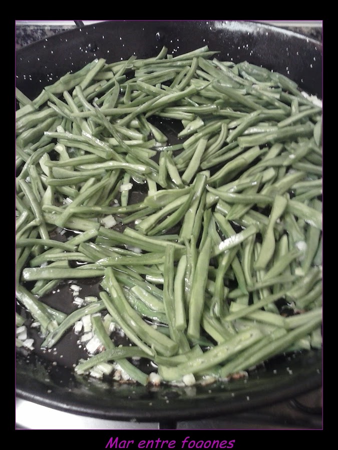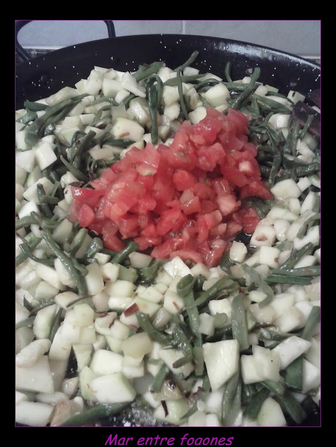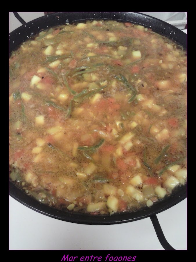 Esparcimos bien por toda la paella, añadimos sal a gusto.