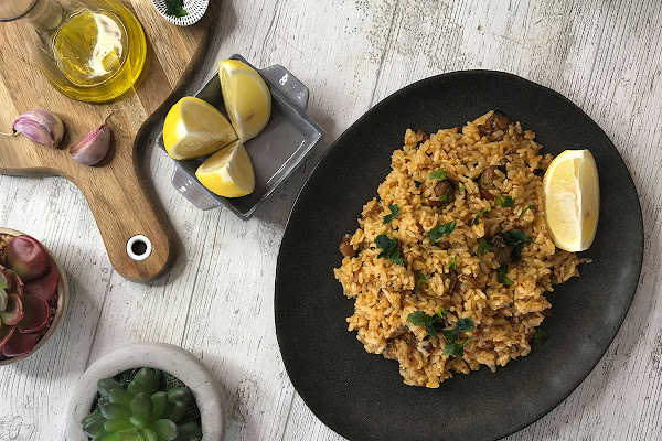 Decora el arroz con algo de perejil picado por encima y un trocito de limón.