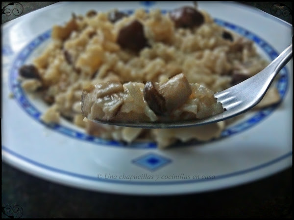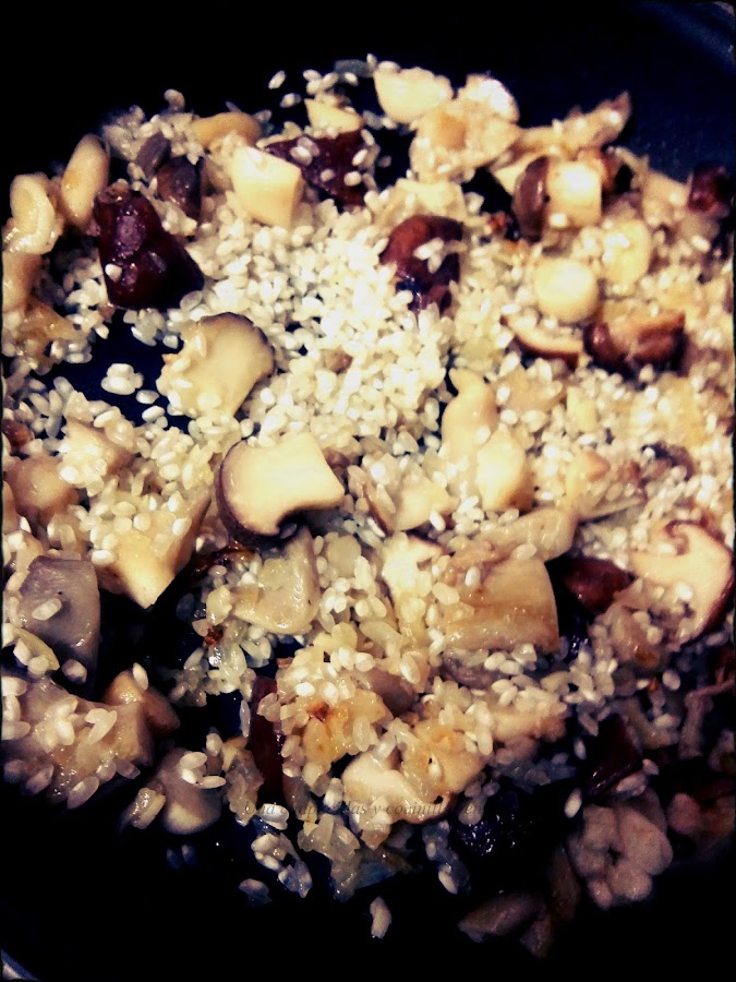 El otro día compré una bandeja de mixto de setas (setas ostra, cardo y shiitake) que me pareció que tenía buen precio, y como no quería hacerme el típico risotto que me suelo preparar, pues me dio por hacer este arroz un poco diferente.