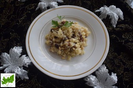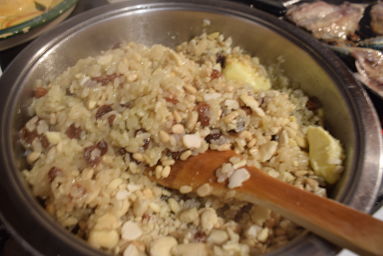 Se trata de un arroz acompañado de frutos secos que aportan una sabor especial. También pregunté a nuestro amigo Google yme encontré algunas versiones de este plato. Otros incorporan carne y lo elaboran de diferente manera. Yo os voy a dejar la de mi libro de cocina pues ha gustado mucho en casa siendo todo un éxito.