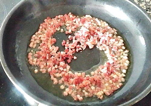 Se sofríe un en envase de jamón en taquitos.