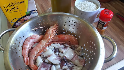 Desde que hiciera el Arroz negro fácil, no había vuelto a comprar un brick de caldo preparado. Normalmente, refuerzo mis arroces de marisco con una pastilla de Duo Paella de Marisco de Avecrem, que tiene más sabor a marisco, aunque con este tienes que disolver la pastilla en agua hirviendo y hacer el sofrito de ajo y tomate.
