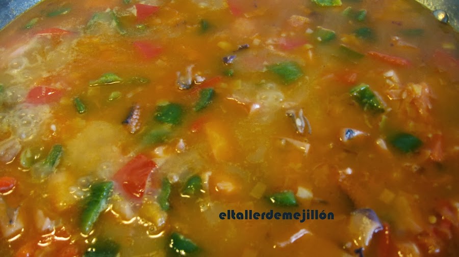 Cuando coge temperatura añadimos el caldo de pescado.