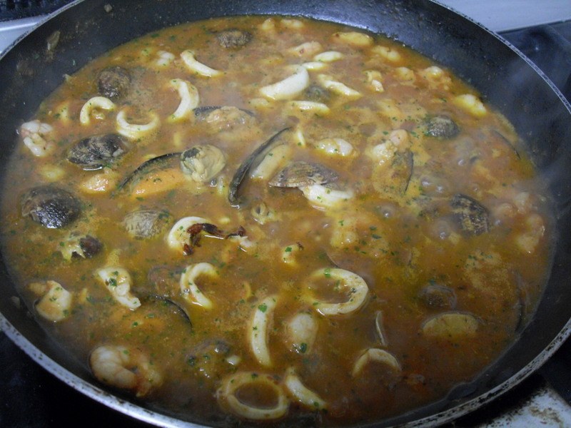 Añadí gambitas peladas que tenía unas pocas en el congelador.