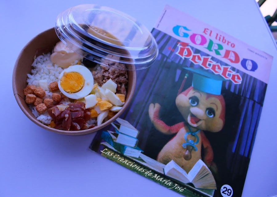 ¿Por qué arroz de petete? Pues porque esta receta salio de una de las revistas del libro gordo de petete. Cuando conocí a mi marido, en su casa hacían esta receta. Su madre les compraba la revista cuando eran pequeños y en una de ellas estaba esta receta. Así que una rica ensalada de arroz se ha combertido en Arroz de Petete, así nunca nos olvidaremos del Libro Gordo de Petete ¡¡que recuerdos!