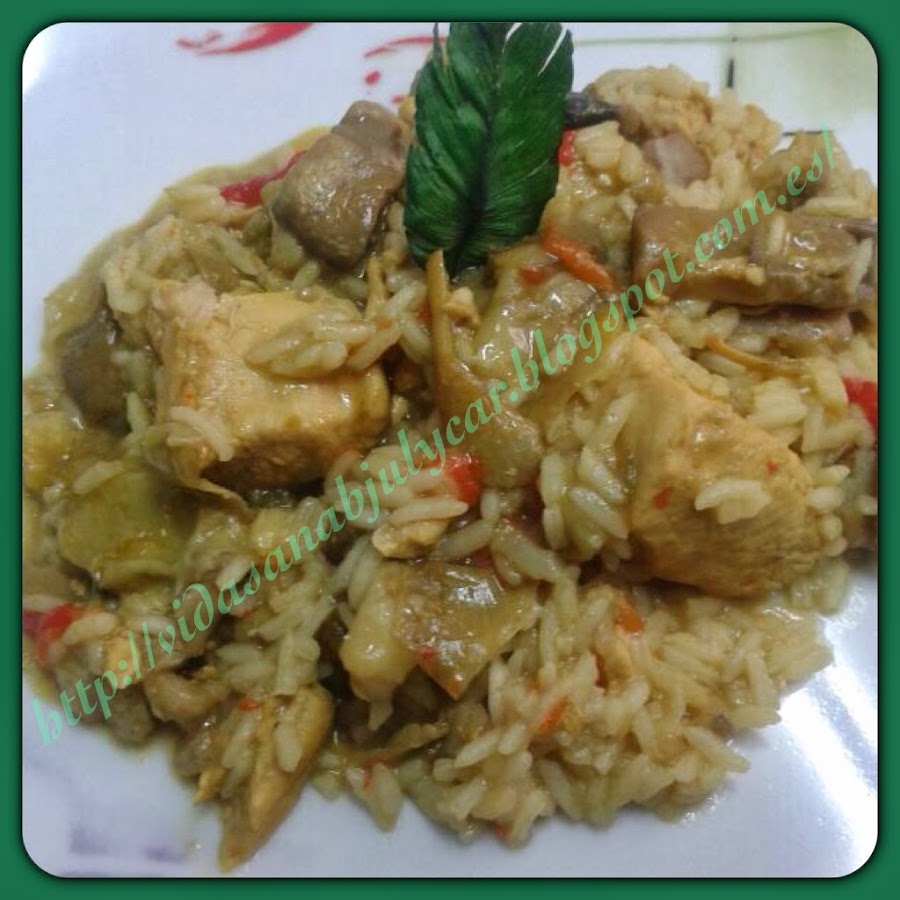 Limpiar y cortar las verduras, cortar a tacos las pechugas de pollo, añadir el aceite en la cubeta de la GM E, menú freír, cuando este caliente el aceite sofreír las verduras y la carne, una vez sofrita, añadir el caldo, sal al gusto, la cúrcuma( yo prefiero usar la cúrcuma por sus buenas propiedades para nuestro organismo y al mismo tiempo le da color y un buen sabor), cancelar el menú, tapar con válvula cerrada, menú guiso 15 minutos, 130º, presión II, cuando termine despresurizar manualmente, añadir el arroz, tapar con válvula cerrada, menú guiso 8 minutos, 130º, presión II, cuando termine despresurizar manualmente y servir