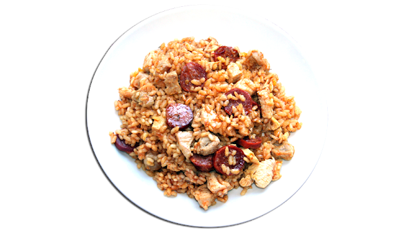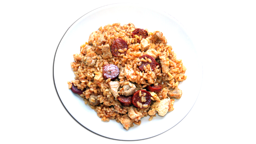 Bueno, tampoco esto es totalmente cierto, lleva un refrito de tomate y ajo aunque apenas se aprecian en el plato. El tomate casi desaparece tras sofreírlo y después de la cocción del arroz. El ajo lo pico tan menudo que no se ve.