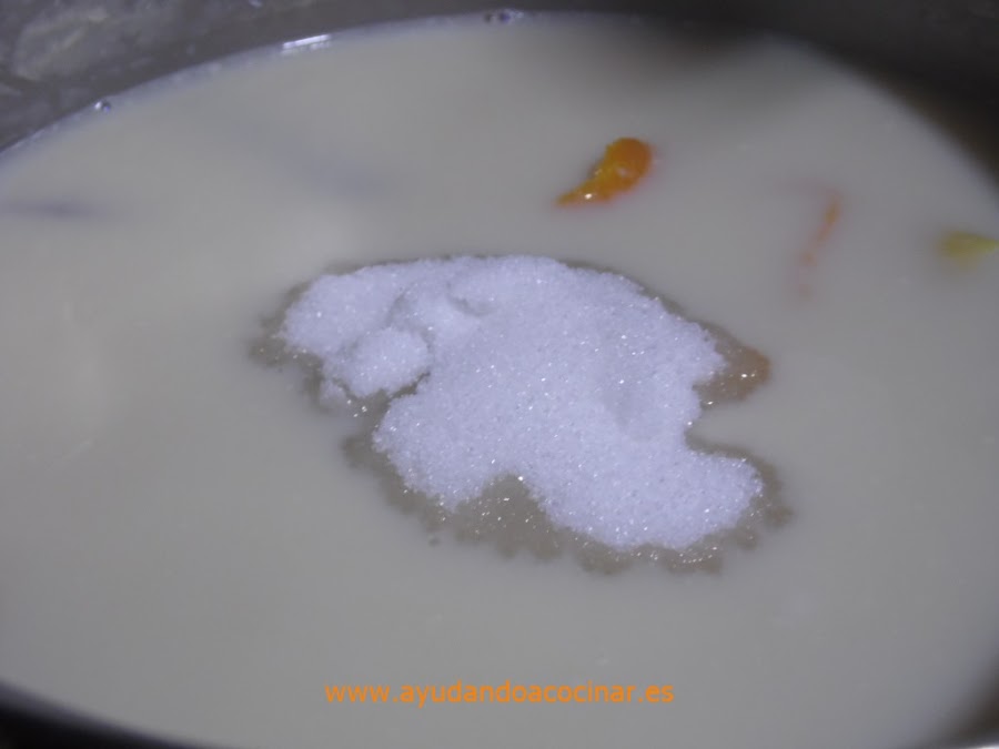 Poner en un recipiente todos los ingredientes menos el azúcar.