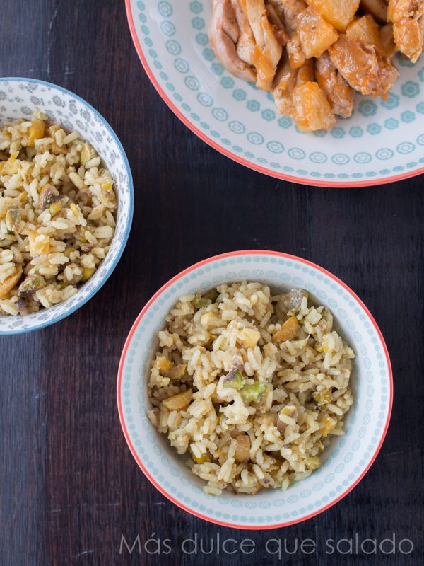 El aroma que desprende cuando se está cocinando es una maravilla, un olor de los que alimenta. Es perfecto para acompañar platos agridulces, aunque se puede tomar como plato único. Sí os sobra un poco lo podéis calentar en el microondas o en una sartén sin problema, la verdad es que no pierde mucho, esta casi igual que recién hecho.
