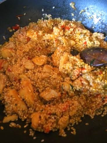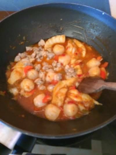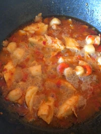 -Almejas, gambas,peregrinas...lo que vosotras queráis. Yo le puse un puñado de peregrinas y un 1/4 de almejas chirlas.