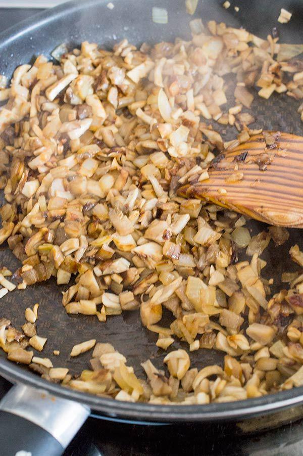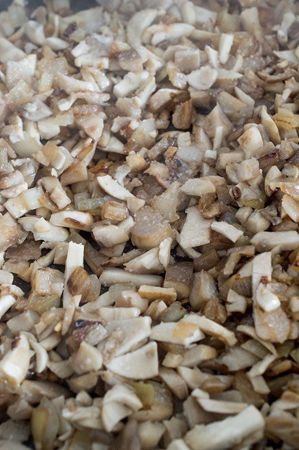 Hacemos lo mismo con los champiñones. Es importante no añadir la sal hasta que estén bien cocinados y así evitamos que echen mucho agua.