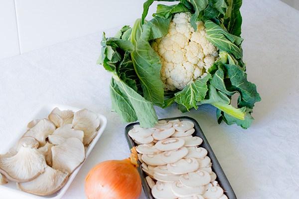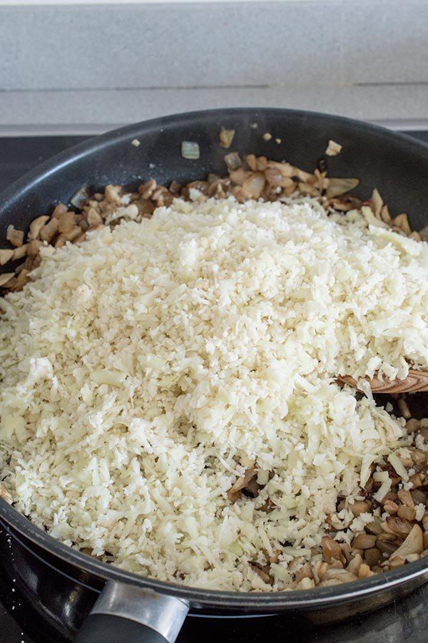 He usado setas de cardo y champiñones pero podéis usar las setas que mas os gusten. Es muy importante que la coliflor se cocine apenas unos minutos, para que así mantenga se firmeza y no se ponga muy blandita, he rallado la coliflor, cortándola en ramilletes y con la ayuda de un rayador rayando primero la parte de las “flores” y luego el tallo, que por supuesto no lo desechamos! 4 ingredientes y lista en apenas 15 minutos!