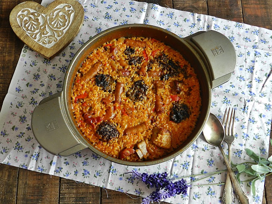El de hoy, no voy a mentiros, es un arroz contundente donde los haya... pero que está para chuparse los dedos hasta los codos! Eso sí, después de comer una buena siesta! jejeje