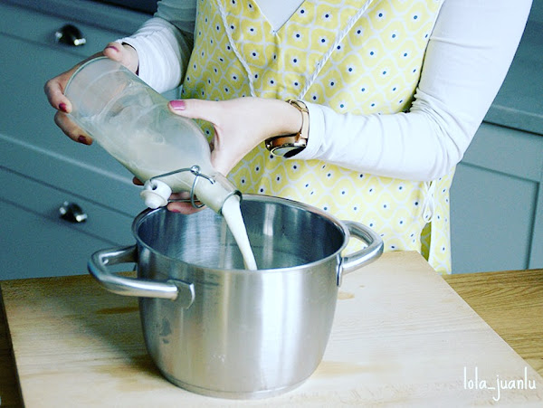 Ponemos una olla a fuego medio-alto y añadimos la leche de almendras que calentamos hasta que comience a hervir.