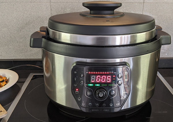 En cuanto se abran, cancelamos el menú (espera unos 10 minutos antes de seguir cocinando. Así se enfriará ligeramente la olla y no descuentará el tiempo antes de coger presión al cocer el arroz)