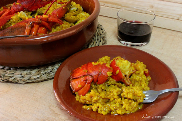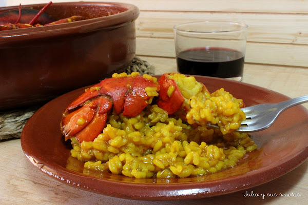 Hoy os dejo un arroz de lujo y fiesta total. Arroz con bogavante... un arroz con sabor a mar, a marisco... sublime , sabroso, meloso... un placer para los sentidos, tanto para la vista como para el paladar...