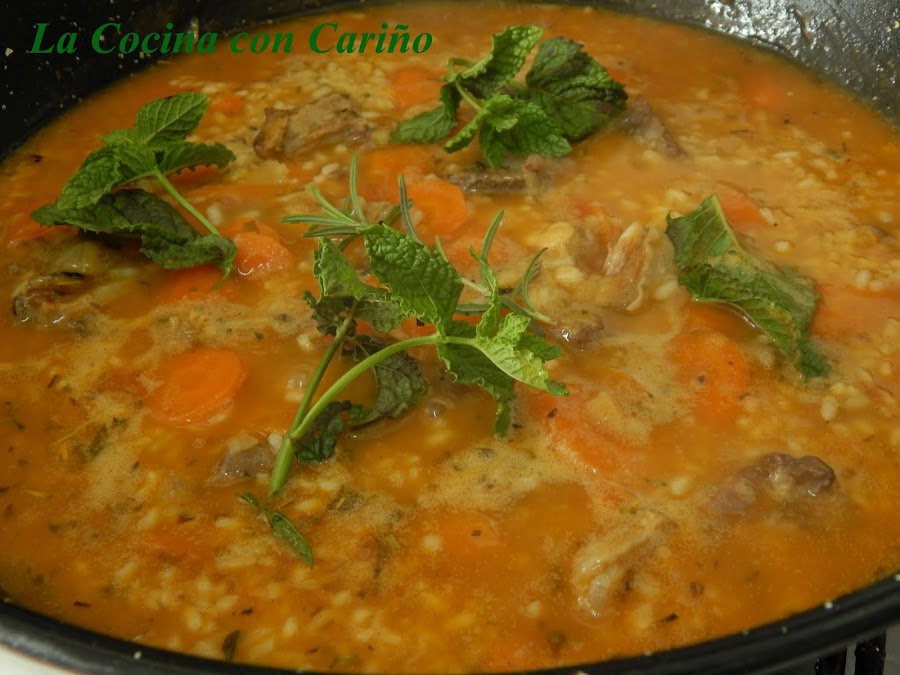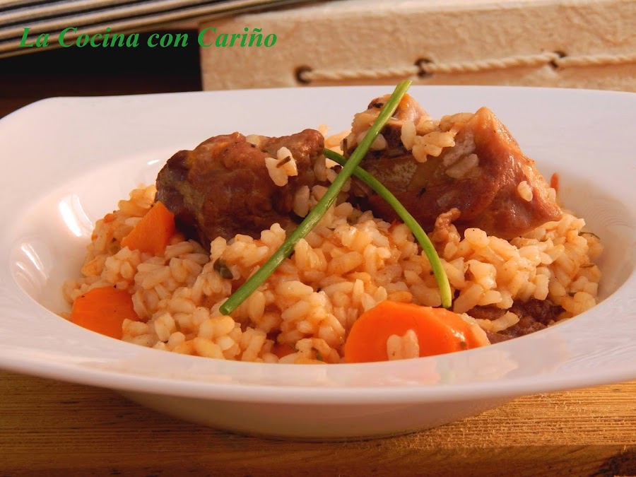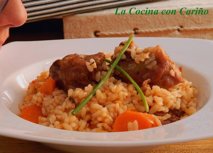 Es un arroz con un sabor intenso, gracias al cordero y a las especias que e hierbas que vamos a usar. Hay a quien no e gusta el cordero, porque dice que sabe mucho, etc. Eso es que no han probado un buen cordero. Para este plato vamos a usar cuello, que lleva carne, poca grasa y el hueso que da mucho sabor. Así que al grano