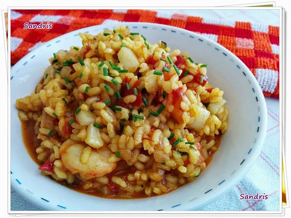 No hace mucho hice una paella de pescado, tipo arroz a banda y ahora me apetecía algo más... suntuoso, melosito... Así que... decidí hacer un arroz meloso de pescado con un pelín de caldito, pero muy pelin, muy pelin, que no llegue a ser un arroz caldoso, más bien... algo a cuestas entre caldoso y meloso :-) Pero como tenía que ponerle un nombre... se parece más a un arroz meloso que caldoso :-D Qué lianta soy, señor mío!!! :-P