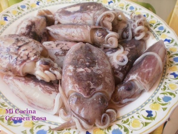 Cuatro chocos (jibias, chopo) medianos, dos por comensal?.el tamaño de unos 10 cmts. y suelo comprarlas en el malagueño mercado de Huelin,