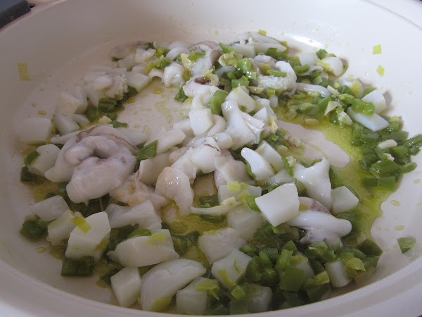 Añadimos el arroz y rehogamos, añadimos el caldo donde previamente habremos desleído la tinta, y cocemos el arroz el tiempo que indique el fabricante.