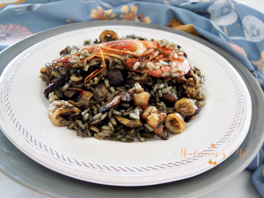 Esta receta de arroz negro con setas, es sencilla y para triunfar, todos los ingredientes que lleva le dan un toque de categoría, incluso lo puedes preparar con lo que tengas en el congelador, que es lo que he hecho yo.