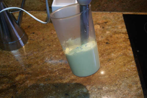 ·Empezamos poniendo el huevo y el ajo con un poco de sal en el vaso de la batidora. Trituramos bien y cuando el huevo a doblado su tamaño vamos añadiendo aceite poco a poco.