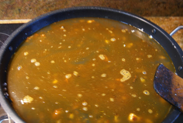 Echamos el caldo de pescado y lo dejamos cocer. Cuando hierva lo hacemos 10 minutos a fuego fuerte y 8 a fuego medio.