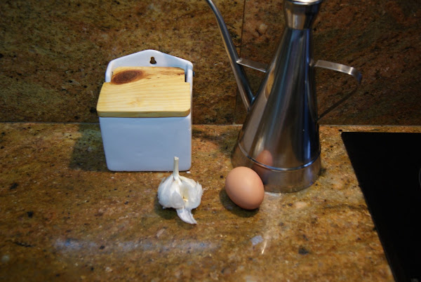 1 huevo, un par de dientes de ajo, aceite de oliva y un poco de sal.