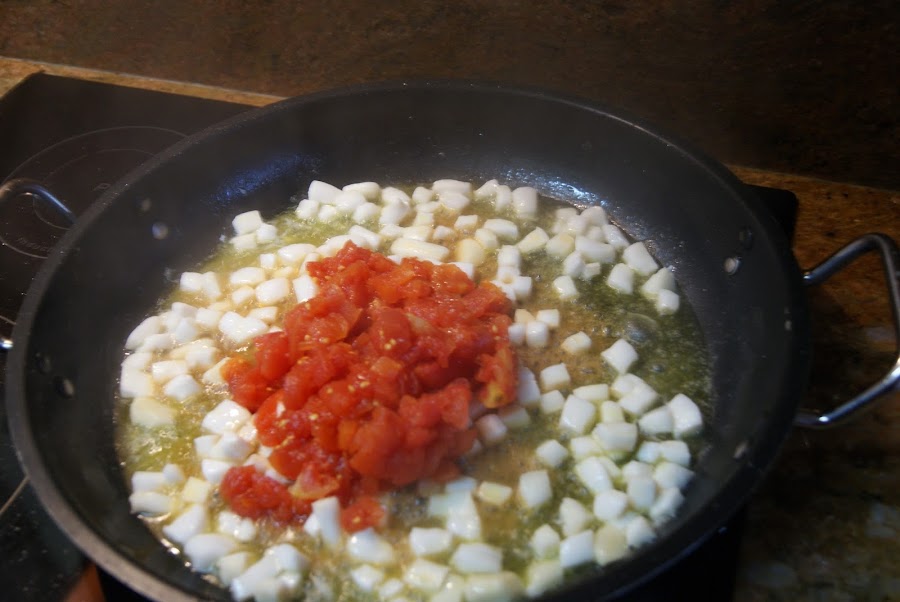 Cortamos el tomate en dados pequeño y lo sofreímos 5 minutos.