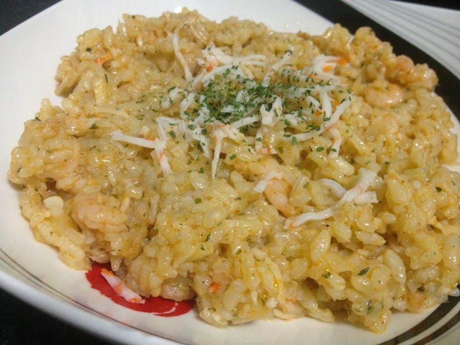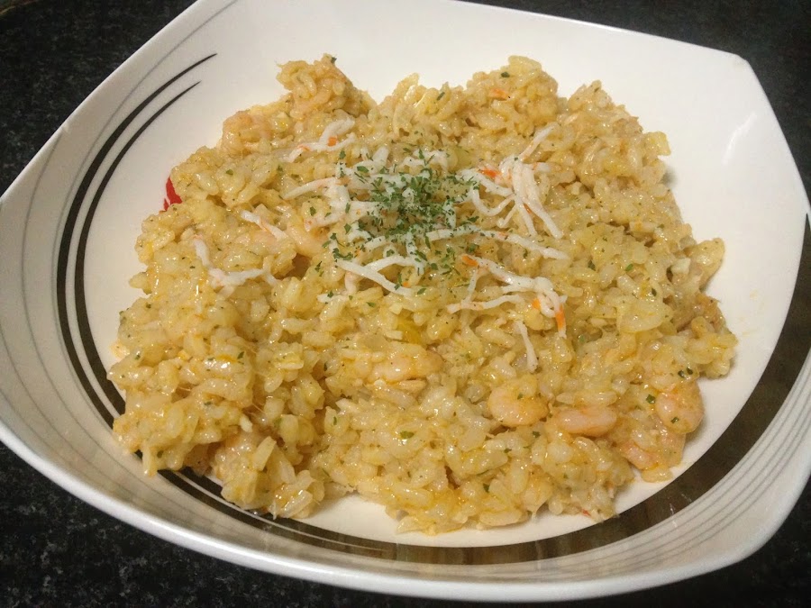 6º - Mientras reposa el arroz , adornamos con el rallado de Krissia y un poco de perejil rallado . Tras reposar unos minutos ya podemos deleitarnos con un plato de toque marinero .