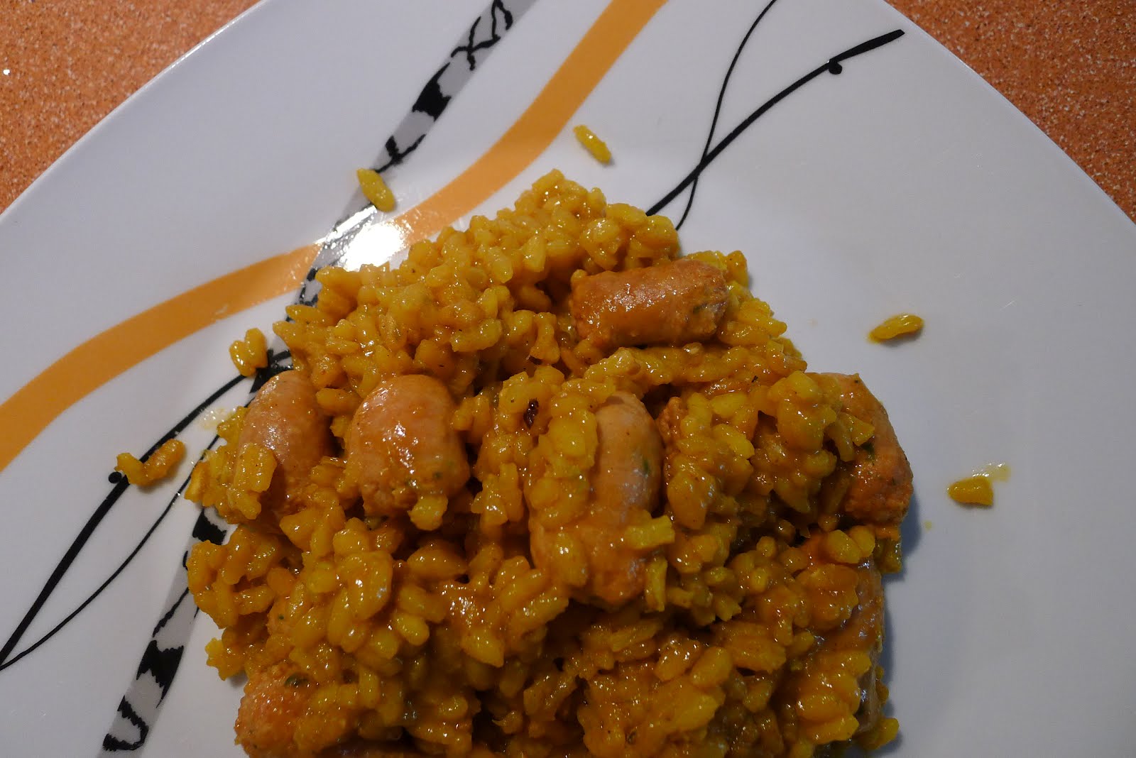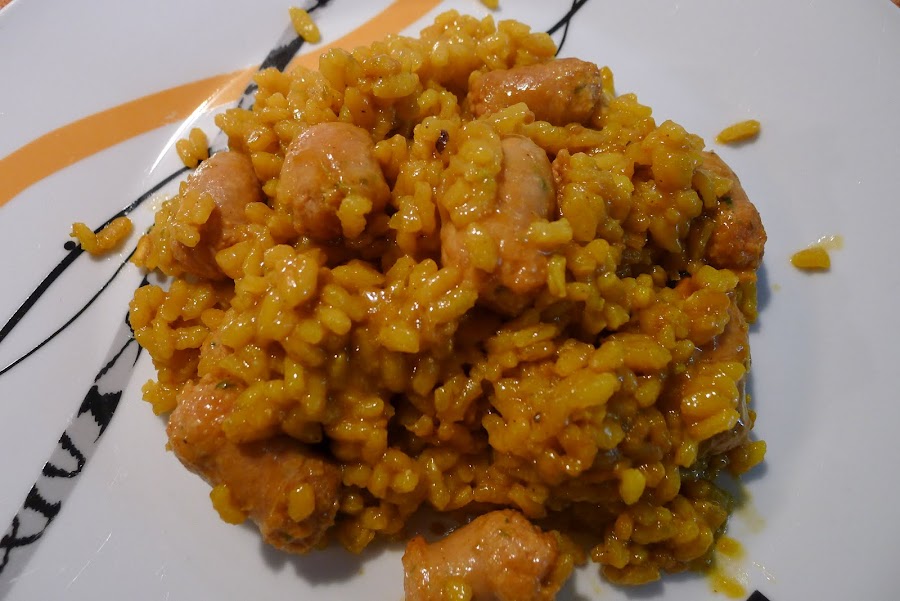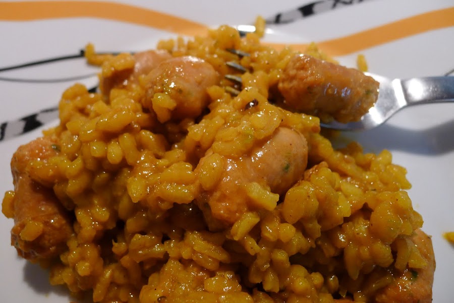 Un arroz sencillito y diferente,al menos a los que yo hago,aprovechando unas salchichitas frescas que me traje de mi tierra,buenisimas por cierto,os animo a probarlo.La receta la saque de aqui.