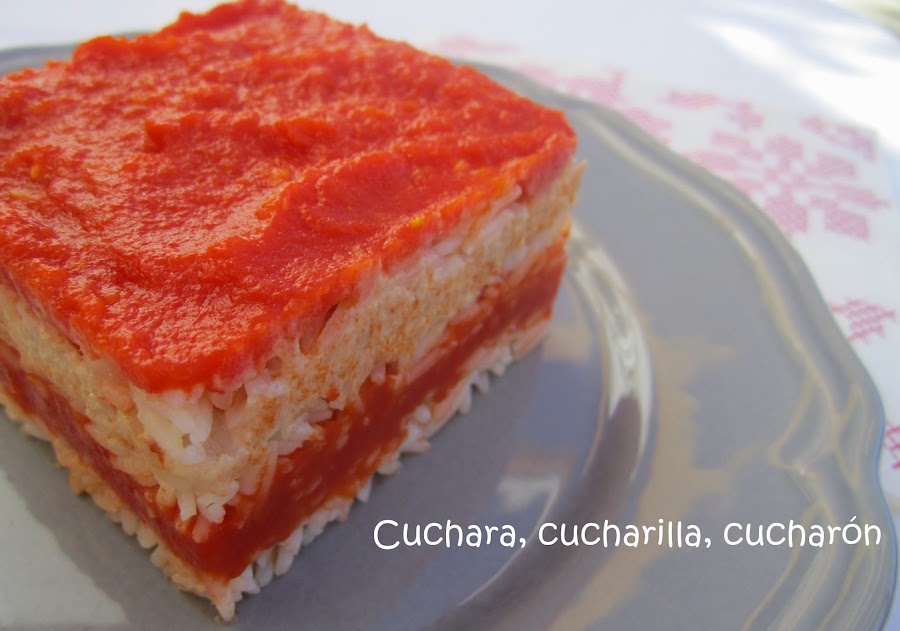 2.- Presentamos alternando capas de arroz, tomate frito, arroz, atún y mayonesa, arroz...