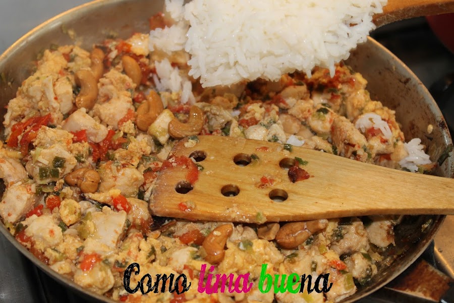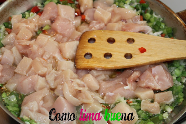 Agregar el pollo. Cocinar hasta que esté doradito.