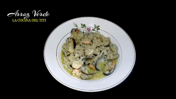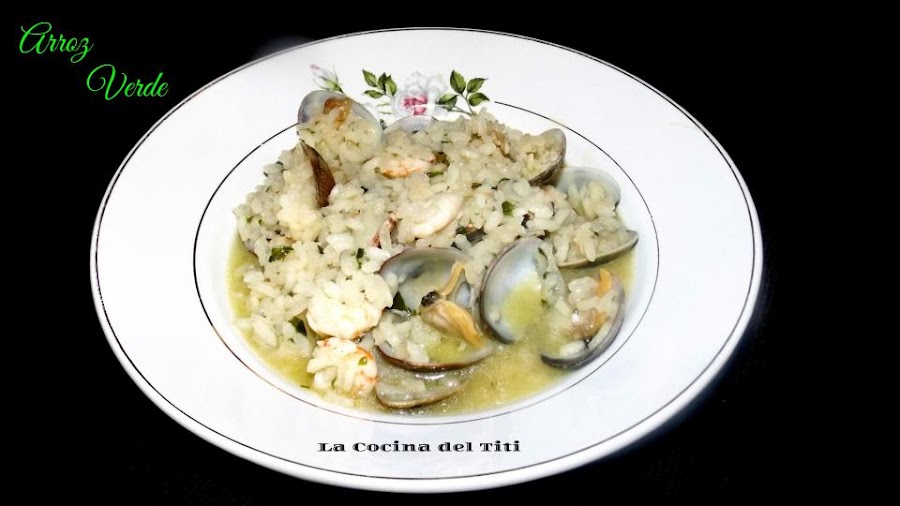 Aqui he intentado de hacer el arroz verde que alli lo bordan y lo hacen de lujo y en el que os recomiendo si algun dia os venis por aqui abajo y decidis comer por La Marea esta maravilla de arroz.
