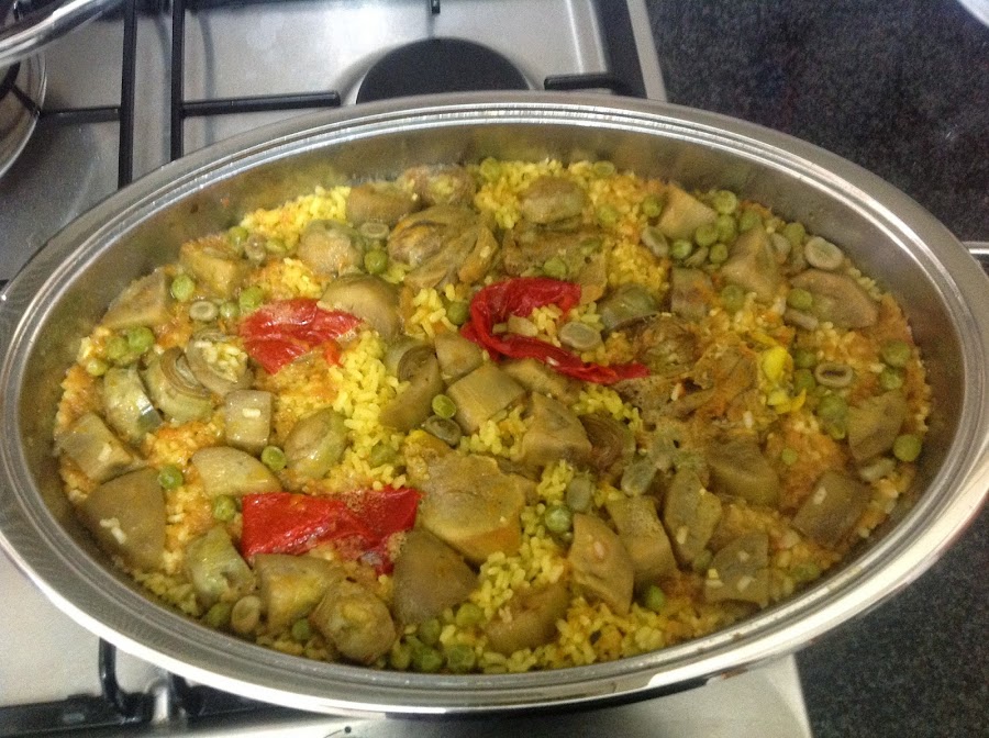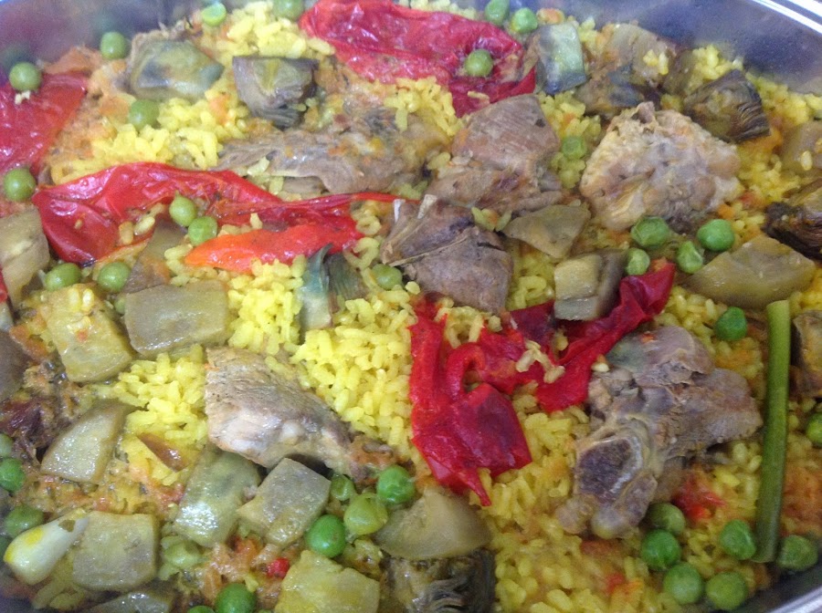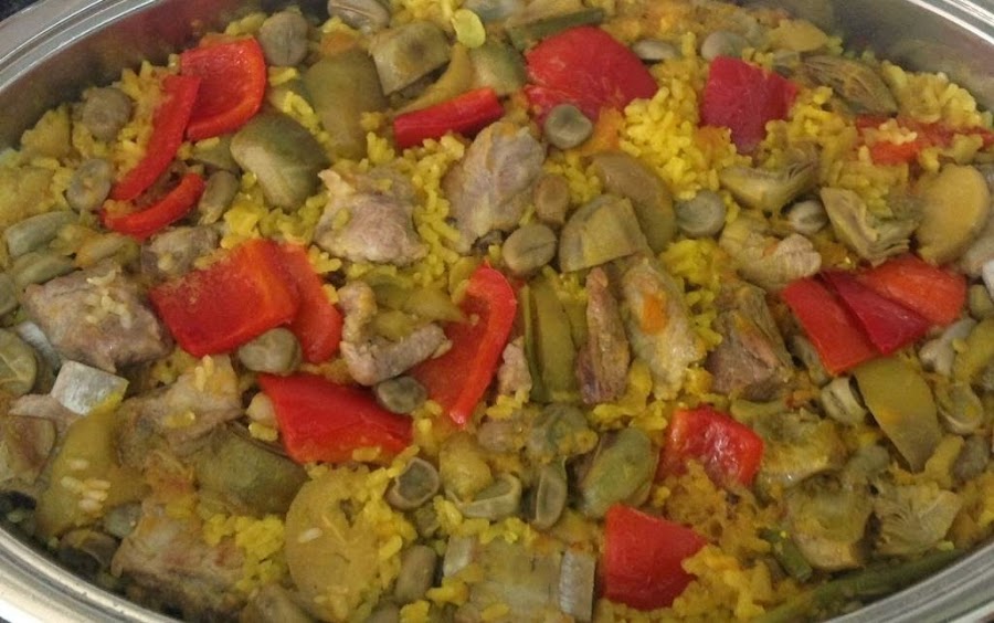 Las verduras son la parte más importante de la llamada dieta mediterránea, en España tenemos la suerte de contar en todas las épocas del año con un abanico amplio de estos alimentos, y debemos de utilizar en cada época los que tenemos frescos en nuestros mercados, aunque podemos aprovechar en ciertas épocas que encontramos algunos a buen precio para congelar e ir sacando durante todo el año. Los ingredientes de nuestro arroz y verduras pueden variar pero el resultado es prácticamente el mismo; la base fundamental son los pimientos rojos, el tomate y la berenjena y estos los encontramos todo el año frescos, además podemos guardar congelados los guisantes frescos, los ajos tiernos y las habas peladas. A partir de estos elementos base podemos añadir alcachofas, bróculi o lo que mas nos guste y encontremos en el mercado. Nosotros en otoño, invierno y primavera le ponemos alcachofas. Es uno de los platos preferidos de mis hijas y suele gustar a pequeños y mayores, además contiene muchas vitaminas, es bajo en calorías y muy completo.Le incorporamos algo de carne para que también las proteínas redondeen la composición.y cumpla con todos los requisitos en nutrientes.