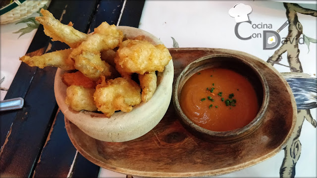 "Tempura de Peixe Atlántico, lima, comino y salsa rabiosa"