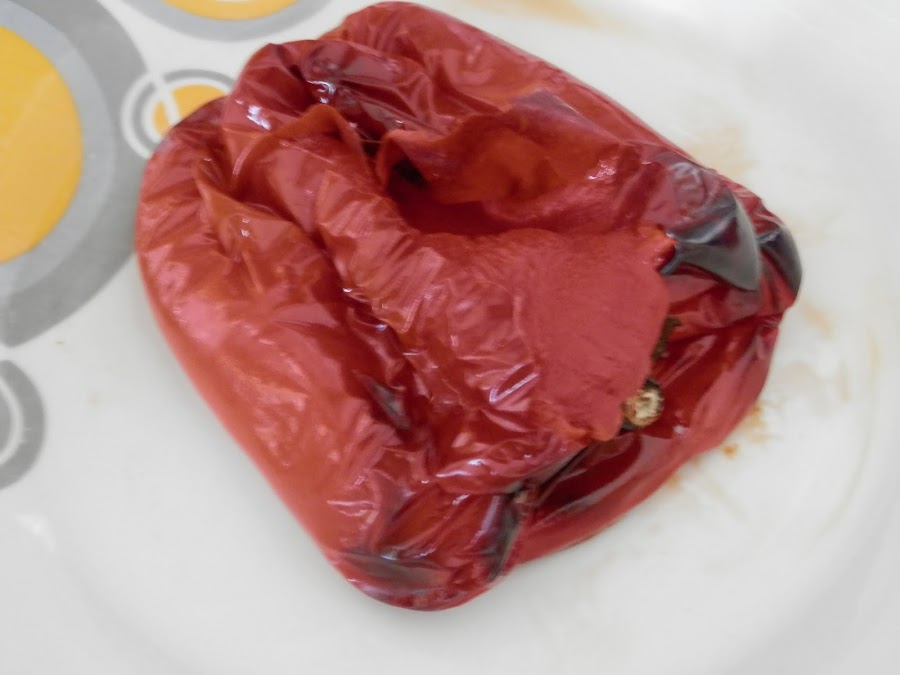 Una vez estén asados, pelamos y retiramos el culo y las pepitas.