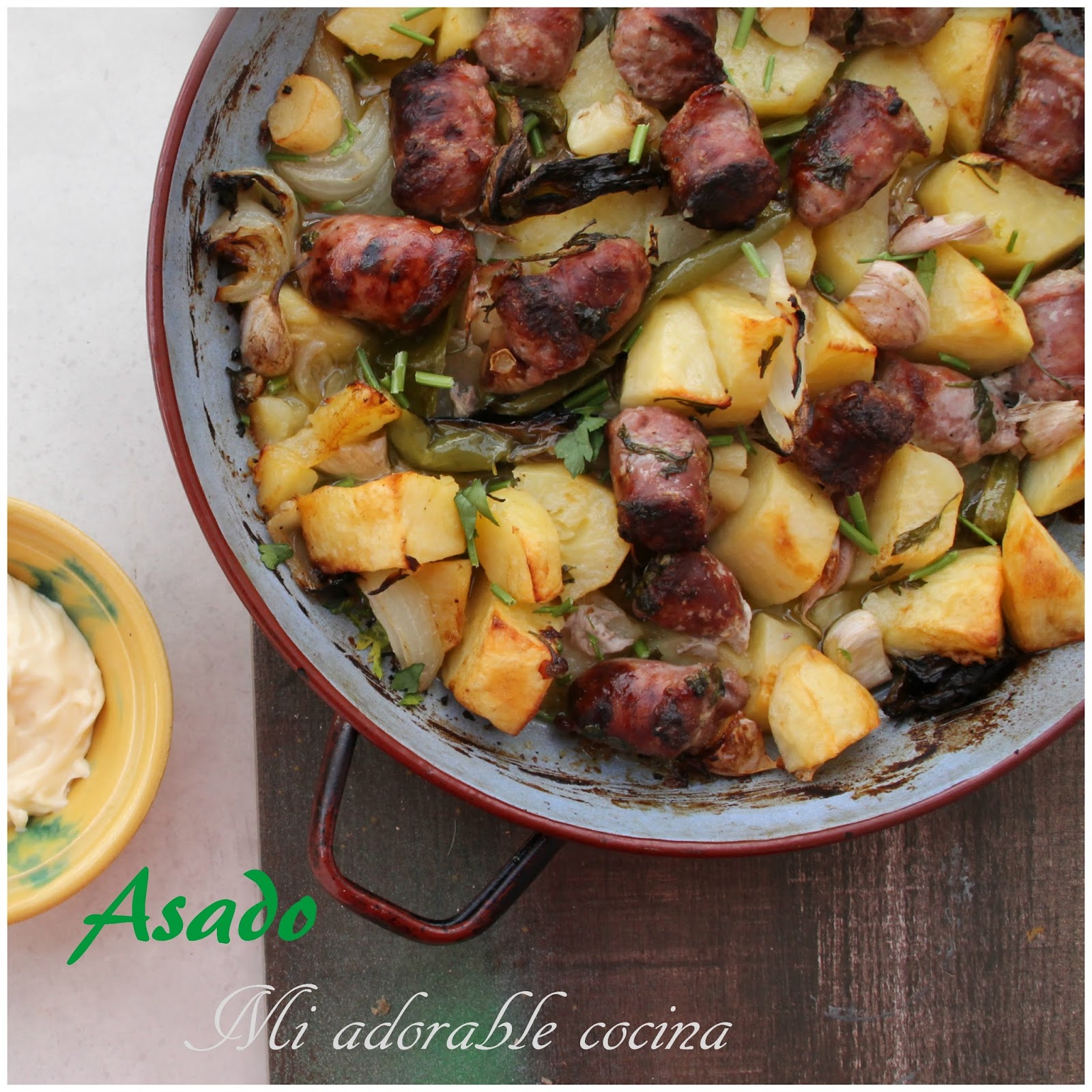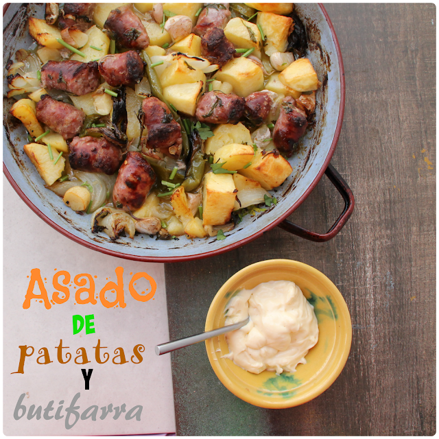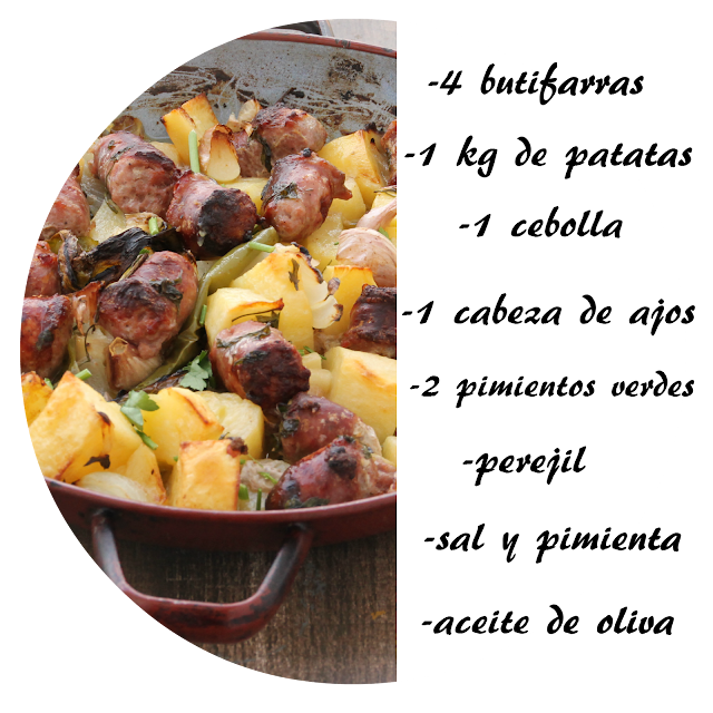 -Seguimos agregando a la fuente; la butifarra cortada, la cebolla cortada, los pimientos, los ajos,perejil, sal y pimienta.