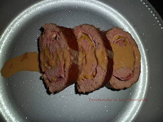 Una vez puesto todos los ingredientes, pasamos a enrollar sobre sí misma la carne (como si fuese un brazo de gitano). Lo cubrimos todo con papel film y lo dejamos reposar en la nevera durante 2 horas.