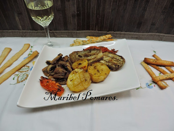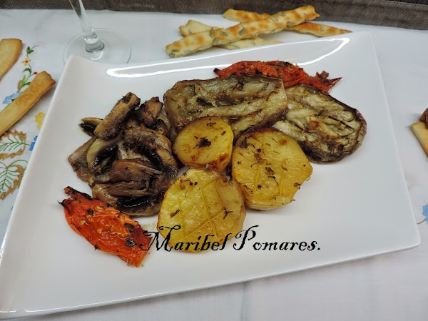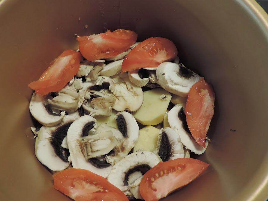 El tomate en gajos y el champiñon en laminas gordas.