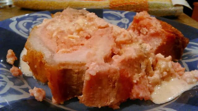 En las fotos solo tiene tres horas a temperatura ambiente, pero de un día para otro en la nevera, queda como un fiambre y se puede cortar más fino sin que se abra.