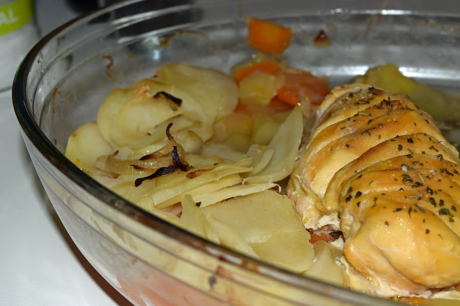 Se trata de pechuga asada con verduras y patatas! Toooodo al horno! Fácil fácil! y os aseguro que no perderéis mucho tiempo con esta receta.