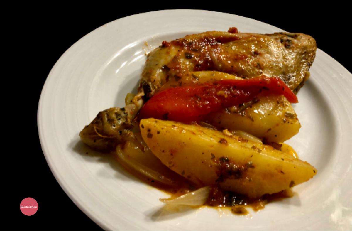 Lo normal es poner el pollo (por supuesto descongelado) y el resto de los ingredientes en una bandeja, precalentar el horno durante 20 minutos, meter la bandeja dentro y asar al menos una hora, hora y media, sin más.