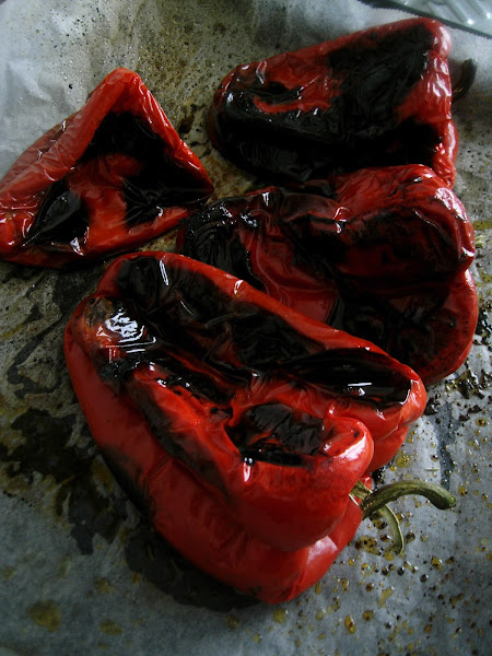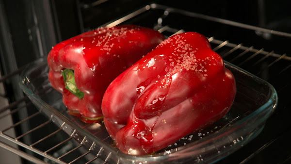 En una placa de horno coloca los pimientos untados con aceite y espolvoréalos con sal.