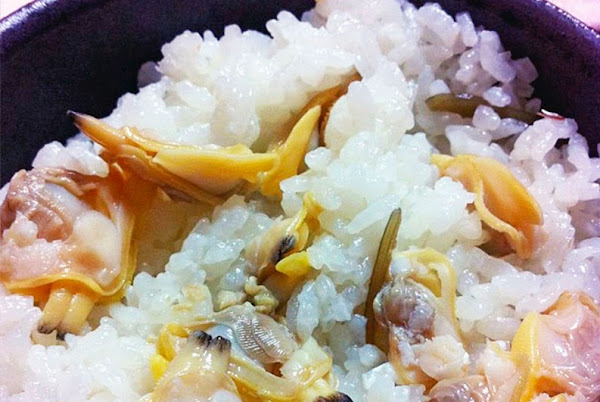 6. Añade la sopa de almejas sobre el arroz.Almeja japónica: