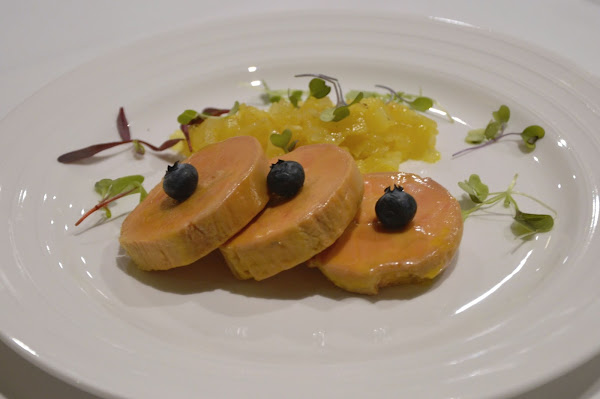 El primer plato fue el Foie gras mi-cuit de pato con chutney de piña y brioche de cacao: uno de los mejores foies que he probado en la capital. Realmente, merece la pena.