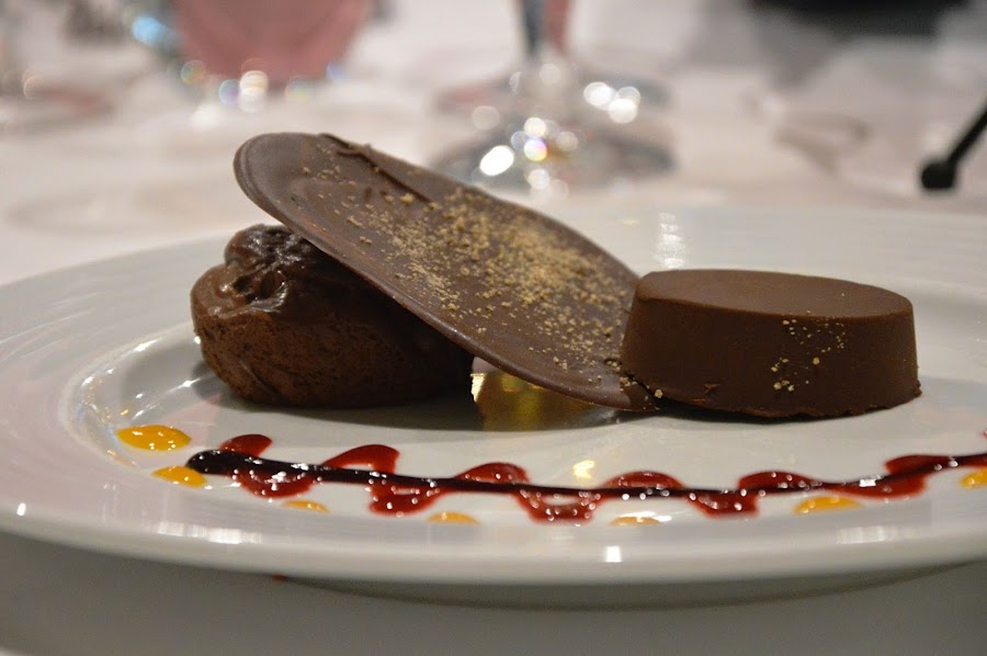 Finalmente, vinieron los postres: una panna cotta tradicional y un chocolate en tres texturas. Yo que no soy mucho de postres, ese chocolate me encantó!!